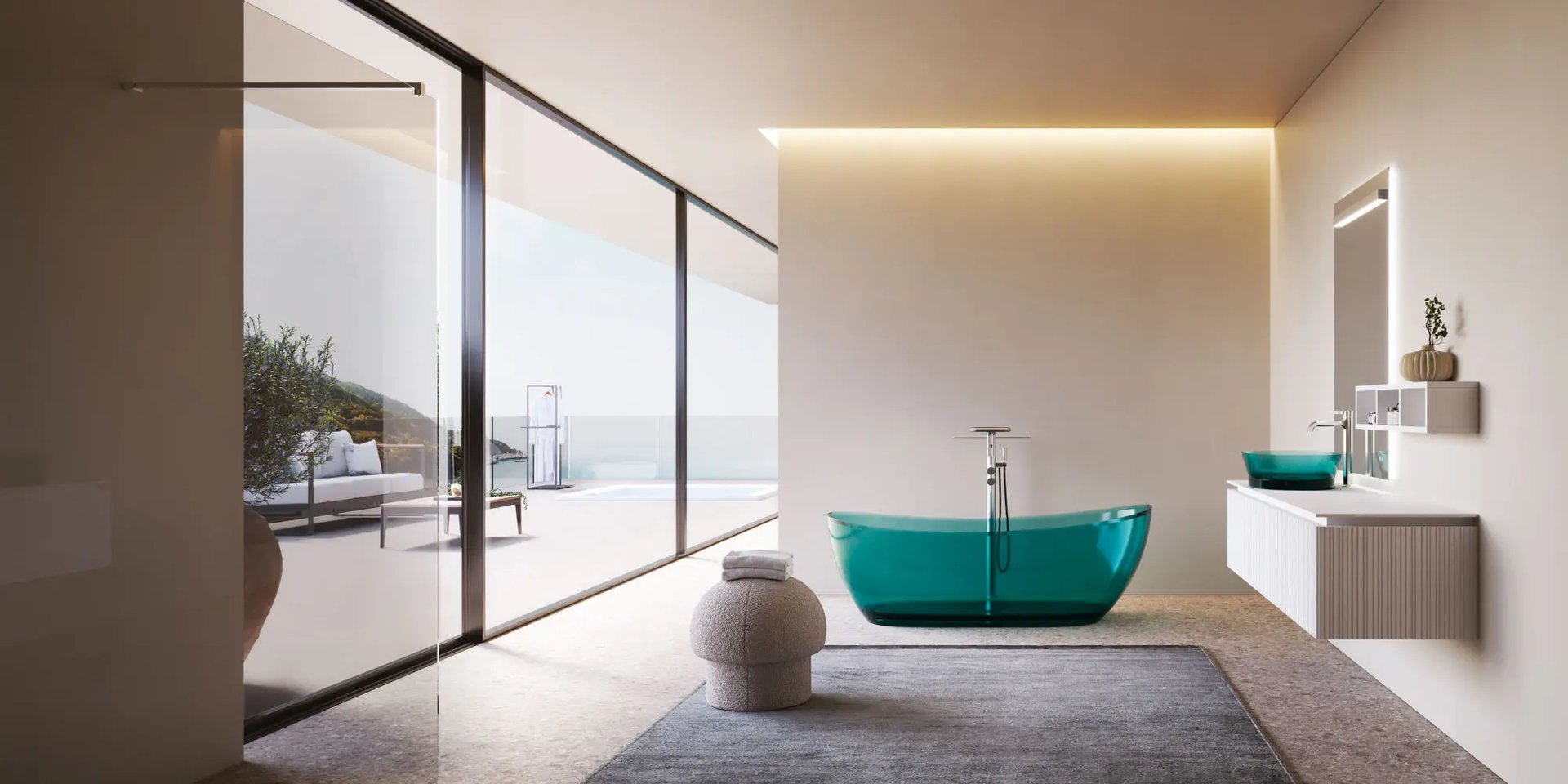 Des lignes pures pour un bain raffiné et contemporain.