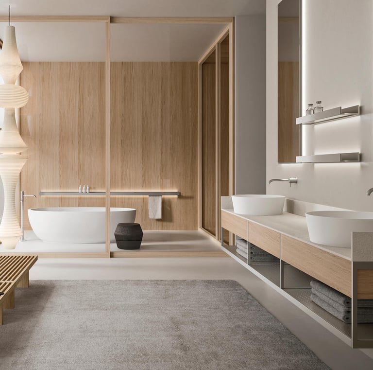 Des lignes pures pour un bain raffiné et contemporain.